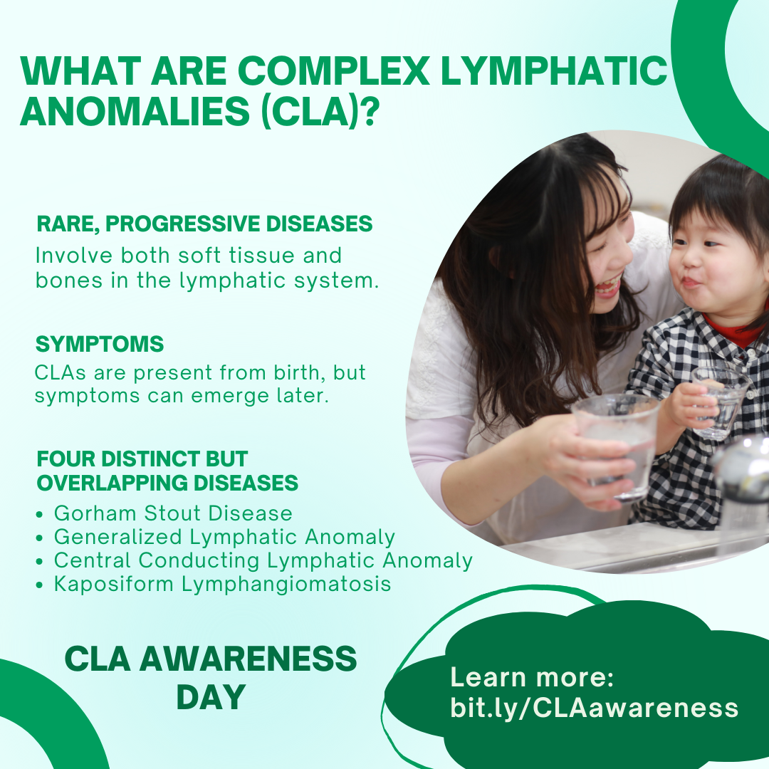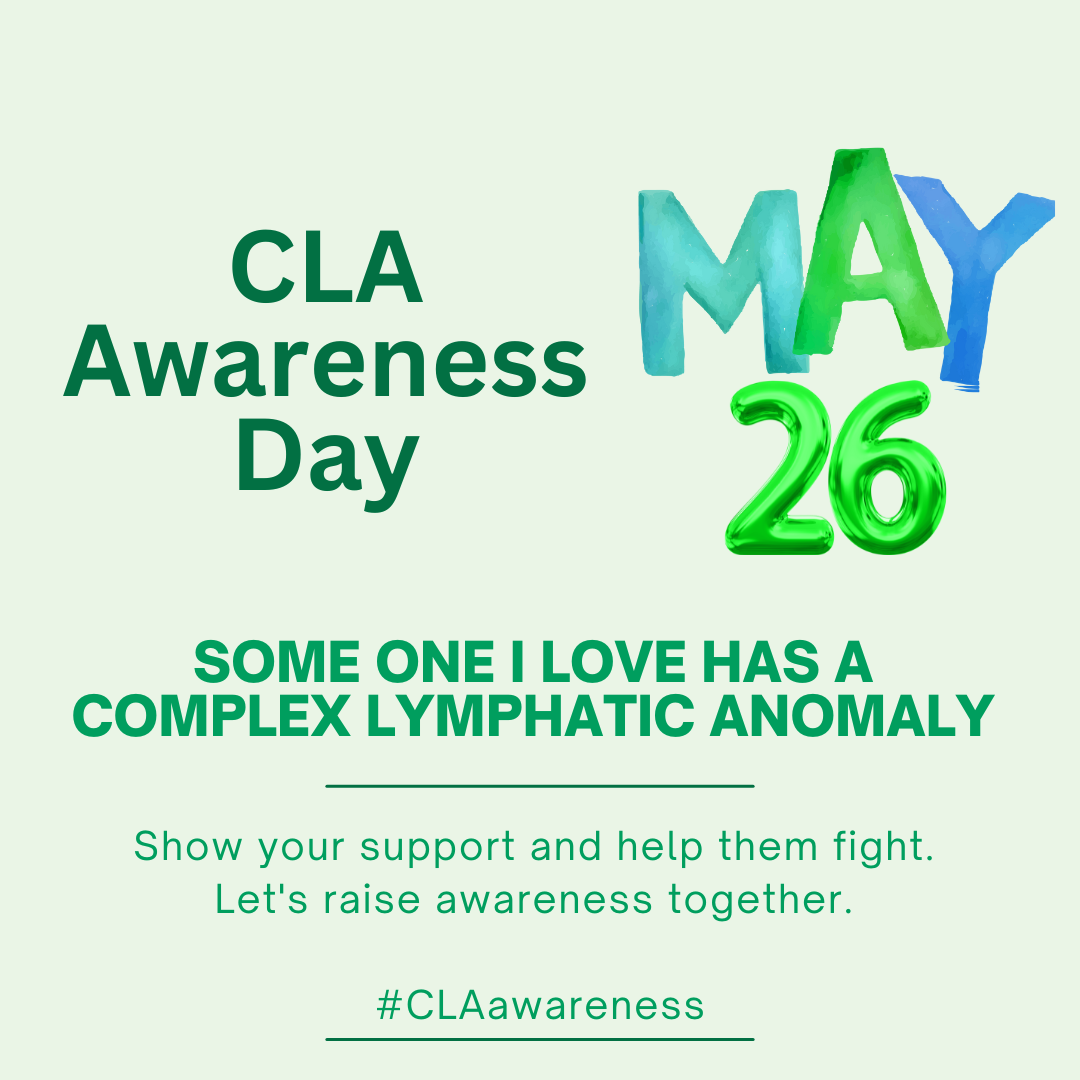 Simply choose your favorite image and share it on your profile with a personal message or with the information provided. Don't forget to use the hashtags #CLAAwarenessDay and #ComplexLymphaticAnomalies to ensure your posts are part of the wider conversation.